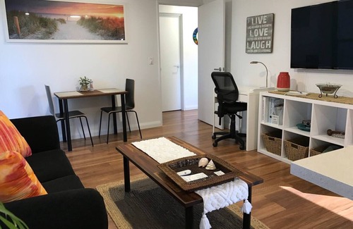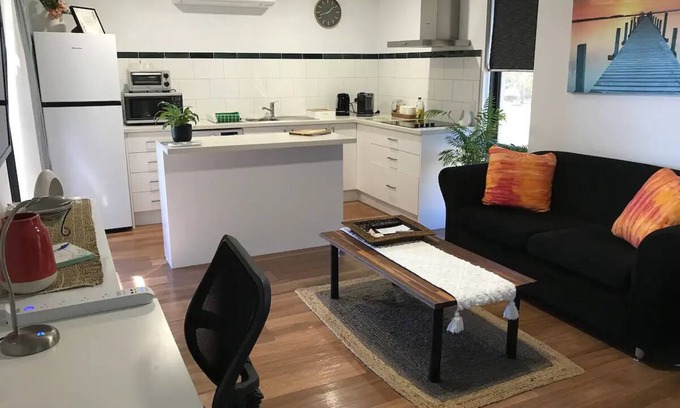 Getaway & relax in our new purpose built, self-contained accommodation. This clean & spacious, eco-friendly accommodation has refreshing rainwater showers to pamper you. Enjoy spectacular sunset ocean views & sea breezes from this private & secure 3.5 acre property. Enjoy all year comfort with reverse cycle split aircon, fans & a comfy queen bed. Dedicated work desk & spacious parking. Safe neighborhood, located 14 mins from the City & 5 mins from beaches. Contact-less check-in available.