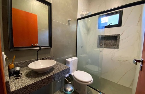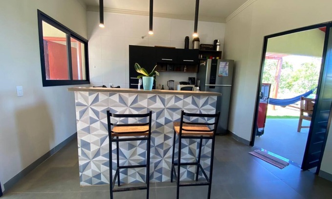 Sophisticated 3 bedroom house less than 5 minutes from the Main Square of Bonito, ideal for families and groups to stay very comfortably. It has: