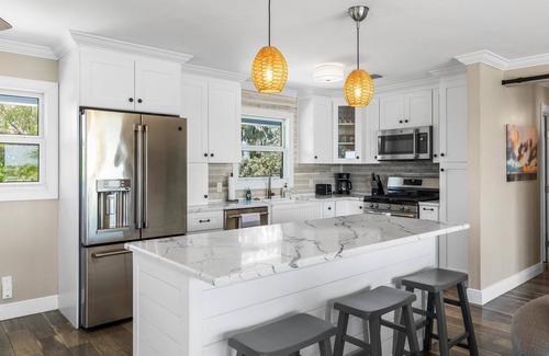 Boaters will love the private dock that accommodates up to a 40' boat, plus an extra 25' of dockage for a smaller vessel. You'll also find 2 sit-in kayaks and 2 bicycles to explore the surrounding beauty by land or sea. After a day of sun, sand, and sea—or a quick 20-minute trip into Key West—come home to your personal sunset show with dolphins and manatees as the evening's VIP guests.
