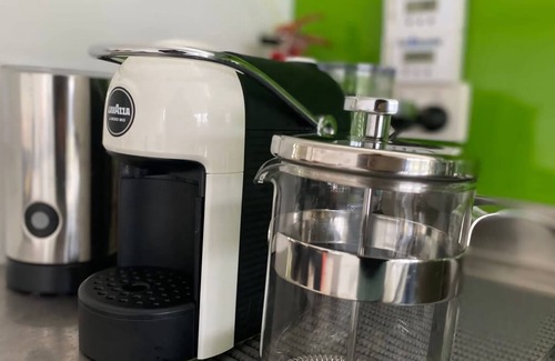 There is an indoor dining area seating 10 and a chef's dream kitchen including a dishwasher, microwave, zip tap, chef's knives, and stainless steel benches. The coffee pod machine make is L'OR Sublime Compact so bring along your favourite style single or double L'or pods or Nespresso Original to enjoy. There is also a coffee plunger for those that prefer drinking filtered coffee.