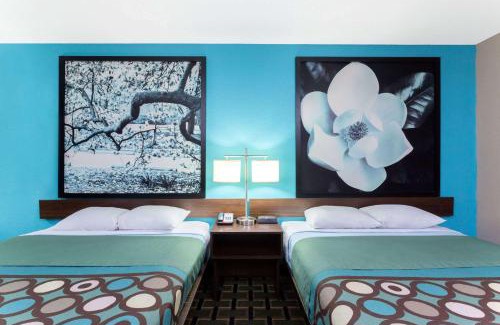 The Super 8 Brunswick South is located off Interstate 95 and is less than 10 minutes’ drive from Blythe Island County Park. This hotel offers a grab and go breakfast and an outdoor pool. A microwave and refrigerator are provided in each simply decorated guest room of this Brunswick hotel. Cable TV and free Wi-Fi are included in all rooms and bedding features colorful patterns. Laundry facilities is on site at the Brunswick South Super 8 as well as a 24- hour reception. Vending machines for snacks and drinks are also available and the entire property is nonsmoking. The Dolphin Tours of Jekyll Island are 20 minutes’ drive from the hotel and the beach is 15 miles away. Central Brunswick is also 10 minutes’ drive from this hotel.