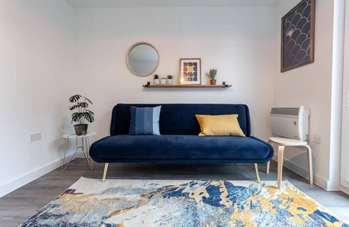This bright and spacious 2 bedroom apartment is set within a modern development in the Old Trafford area of Manchester, just 5 minutes walk from Old Trafford stadium. The modern interior is beautifully finished, featuring floor to ceiling windows, elegant furnishings and all the amenities you need for a comfortable stay in the city. The property sleeps up to 5 guests with use of the sofa bed.