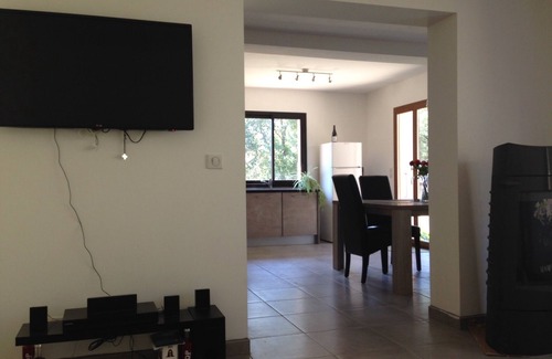 In a very quiet setting, at the entrance of a small village, a beautiful new apartment with two bedrooms, a large bathroom (bath + walk-in shower) and a fully equipped kitchen. (induction hob, washing machine, dishwasher)
