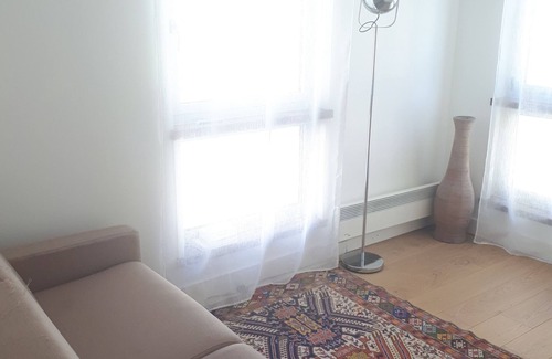 The kitchen is equipped with an oven, a stovetop, and a refrigerator, as well as a coffee maker, an electric kettle, and a microwave. Bathroom amenities include a hair dryer, towels, and toilet paper. And you won't have to pack extra clothes, because you'll also have a washing machine. Other amenities include bed sheets, a desk, an ironing board, and heating.