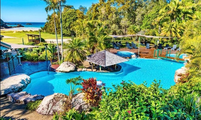 Just a 5-minute walk from Diggers Beach and 0.7 miles from Park Beach, Superb Villa in Beach Resort features accommodations in Coffs Harbour with a spa and wellness center, massage services, and a garden. This beachfront property offers access to a terrace, free private parking, and free Wifi. During your stay at this apartment, you can use an outdoor swimming pool, as well as a selection of a hot tub and a 24-hour front desk. The air-conditioned apartment is composed of 2 separate bedrooms, a living room, a fully equipped kitchen, and 2 bathrooms. A flat-screen TV with streaming services is provided. For added privacy, the accommodation has a private entrance and is protected by full-day security. Guests can eat at the on-site family-friendly restaurant, which is open for dinner, brunch, and cocktails. For guests with children, the apartment provides a children's playground. The apartment has a picnic area where you can spend the day outdoors. The Big Banana is a 12-minute walk from Superb Villa in Beach Resort, while Coffs Harbour Train Station is 2.8 miles away. Coffs Harbour Airport is 3.1 miles from the property.