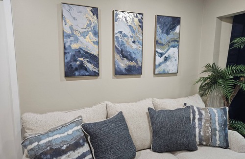 Mesquite is waiting for you at this brilliant 2-bedroom, 1 bath house. With very soft queen beds, and a crib, this cozy retreat is perfect for families getaways. Enjoy a 65' smart TV in the living room with comfy sofa bed for extra guests. Bathroom is ADA compliant to ensure everyone stays refreshed during their stay. Experience the magic of Mesquite at our serene home. Max guest 6 (number includes adults, children and infants).