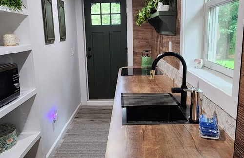 Quiet location, surrounded by trees and nature, a pond on the property that brings the beautiful sounds of nature to help relax you in the evening. We are located with a 24 acre persevere behind our home which truly makes you feel a sense of calm. If you are lucky you may spot some deer wandering past your kitchen window in the dawn or dusk, on very rare occasions you may get a glimps of a fox. The various frogs in the pond make you feel as though you are at a nature symphony in the spring & summer evenings. This delightful house features a comfortable queen bed, brand new mattress & bedding. A refreshing new shower with toiletries on hand in the event you forget something. We have a magnified mirror in the bathroom for an added convenience.