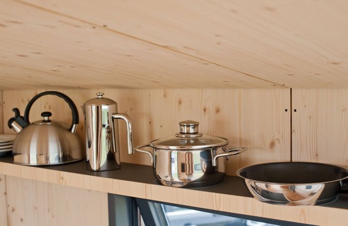 Sustainable accommodation by the sea - the Green Tiny Sleep Space in Wangerland is located in Wangerland. Sustainable accommodation by the sea - the Green Tiny Sleep Space in Wangerland provides accommodation, featuring Kitchen, Oceanfront, Fireplace/Heating, among other amenities. This House features Kitchen, Oceanfront, Fireplace/Heating, to make your stay a comfortable one.