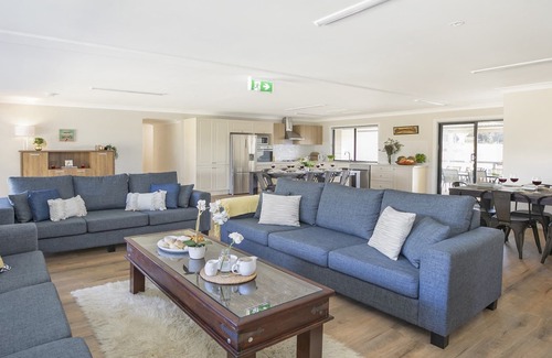 Children will love the outdoor play equipment, swings and basketball/volleyball court and the indoor rumpus room with games. For the adult's entertainment, there's table tennis and a fire pit to relax around and take in the views of rolling hills and gum trees.