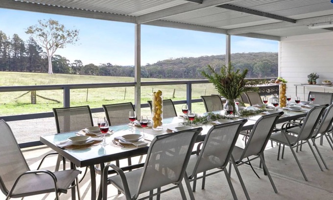 Set amongst 135 acres of tranquil bushland, Sutton Forest Retreat is an ideal escape for large groups of friends or family wanting to enjoy a country getaway. Three houses - Jimmy's Homestead, Sophie's Farmhouse and The Hideaway - comfortably accommodate groups with 29 bedrooms and 16 bathrooms. The houses are well-appointed for entertaining, featuring spacious open-plan kitchen/dining and living areas along with a large covered outdoor space with extensive BBQ facilities.