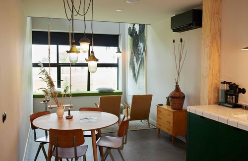 Suvelfabryk has the ideal accommodations to celebrate real life together. In this converted old dairy factory you can stay with your partner, family or group of friends in spacious, rugged and comfortable apartments. The interior is sturdy, but fully equipped with spacious, comfortable bathrooms, often with bath or spacious showers, large kitchens where you can really cook and eat together. In the garden of Suvelfabryk you can enjoy the beautiful, wide, unspoilt Frisian Wadden Country. The bedrooms are practical and comfortable, linen is included, as are tea towels. Suvelfabryk offers a local breakfast that can be ordered separately. In short, here you will find everything to (re)discover and celebrate real life!Those who are not gone are seen. In any case, what you do see here is the wonderfully wide view. This apartment with built-in loft has an unmistakable loft feeling. Large windows and accessible from the outside via a beautiful wide balustrade where you can sit with a homemade breakfast or a self-uncorked bottle of wine. You also have direct access to the walled outdoor area of the dairy factory. Of course you will also find a complete kitchen and bathroom with shower and a separate toilet here. You can enjoy and sleep here with 4 people in one of the double beds in the two bedrooms in the apartment.The Suvelfabryk is located in Northeast Friesland at the foot of the Waddenzeedijk. Near the authentic fishing village of Paesens-Moddergat and a stone's throw from the Lauwersmeer National Park and close to the boat to Schiermonnikoog. Enjoy mudflat walking, if you want, by the moonlight. A nighttime walk with the ranger in the Dark Sky Park Lauwersmeer where you can see the Milky Way on clear days. Art in better museums in Leeuwarden and Groningen and exhibitions in special galleries, in cultural churches and in the open air. Theater in beautiful halls and in neighborhood cafes. Music, literally everywhere. Two hortuses and many special gardens. Sixty million migratory birds, sea eagles, buzzards, hawks, roe deer, hares and foxes. You can see them from your window. Everything is within reach. From nature to city. Upon arrival, a booklet will be ready with the special places and locations we have collected for inspiration.