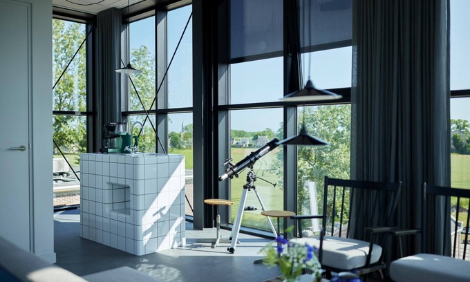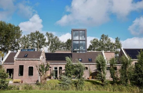 Suvelfabryk has the ideal accommodations to celebrate real life together. In this converted old dairy factory you can stay with your partner, family or group of friends in spacious, rugged and comfortable apartments. The interior is sturdy, but fully equipped with spacious, comfortable bathrooms, often with bath or spacious showers, large kitchens where you can really cook and eat together. In the garden of Suvelfabryk you can enjoy the beautiful, wide, unspoilt Frisian Wadden Country. The bedrooms are practical and comfortable, linen is included, as are tea towels. Suvelfabryk offers a local breakfast that can be ordered separately. In short, here you will find everything to (re)discover and celebrate real life!This is literally a story in itself, or should we say a story in its own right? This is an apartment that literally connects two worlds. The sturdy, rugged feeling of the old factory and the modern, sleek feel of a glass tower that towers high above the landscape.Six people can enjoy each other here together and everything that the wide, flat land of Northeast Friesland has to offer. Here too, a large kitchen where you can cook together, 3 x double beds. 1 bedroom is on the ground floor with garden room. The other two bedrooms are accessible in the tower via a large, sturdy spiral staircase. The top tower room is the second sitting room with fantastic views of the surroundings. And has its own bar. Great for lounging, chilling or just having a drink and a good conversation. Downstairs there is another sitting room for those who prefer to keep their feet on the ground. But anyway, a very spacious, 170m2, unique apartment!The Suvelfabryk is located in Northeast Friesland at the foot of the Waddenzeedijk. Near the authentic fishing village of Paesens-Moddergat and a stone's throw from the Lauwersmeer National Park and close to the boat to Schiermonnikoog. Enjoy mudflat walking, if you want, by the moonlight. A nighttime walk with the ranger in the Dark Sky Park Lauwersmeer where you can see the Milky Way on clear days. Art in better museums in Leeuwarden and Groningen and exhibitions in special galleries, in cultural churches and in the open air. Theater in beautiful halls and in neighborhood cafes. Music, literally everywhere. Two hortuses and many special gardens. Sixty million migratory birds, sea eagles, buzzards, hawks, roe deer, hares and foxes. You can see them from your window. Everything is within reach. From nature to city. Upon arrival, a booklet will be ready with the special places and locations we have collected for inspiration.
