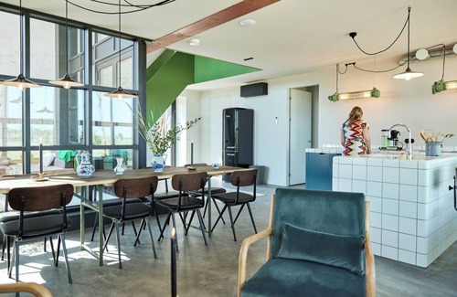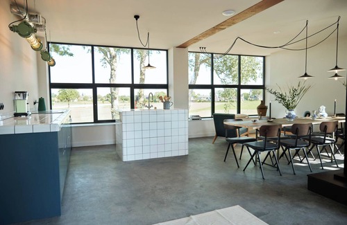 Suvelfabryk has the ideal accommodations to celebrate real life together. In this converted old dairy factory you can stay with your partner, family or group of friends in spacious, rugged and comfortable apartments. The interior is sturdy, but fully equipped with spacious, comfortable bathrooms, often with bath or spacious showers, large kitchens where you can really cook and eat together. In the garden of Suvelfabryk you can enjoy the beautiful, wide, unspoilt Frisian Wadden Country. The bedrooms are practical and comfortable, linen is included, as are tea towels. Suvelfabryk offers a local breakfast that can be ordered separately. In short, here you will find everything to (re)discover and celebrate real life!Appartment 12: 8 people can relax here together and through a smart connection this apartment can be linked to apartment 13, making them suitable for 16 people! “Plenty of space” is what we say here. Apartment 12 is on the first floor of the dairy factory, has a beautiful large living room with a large fully equipped kitchen, 2 bedrooms with double beds and 2 bedrooms with 2 single beds. There is 1 nice and complete bathroom and 1 ensuite shower and the loft gives this apartment a real loft feeling.In America this would be called apartment 12B, but Frisians are not that superstitious so we just call it apartment 13 and that's what it is. And is suitable for 8 people. And thanks to the ingenious connection with apartment 12, they are together suitable for up to 16 people. Apartment 13 is located on the first floor of the old tank room of the dairy factory and looks nice and cool and industrial. In the high, spacious living room with large kitchen island, complete kitchen and a beautiful loft, there is plenty of room for a large family or group of friends. And combined with apartment 12, the in-laws and supporters can also come along. (Without having to get in each other's way, hahaha!) Apartment 13 has 4 bedrooms, three with double beds and one with two single beds. So many combinations are possible!Here too, two nice bathrooms and large windows with a fantastic view over the flat Frisian land.The Suvelfabryk is located in Northeast Friesland at the foot of the Waddenzeedijk. Near the authentic fishing village of Paesens-Moddergat and a stone's throw from the Lauwersmeer National Park and close to the boat to Schiermonnikoog. Enjoy mudflat walking, if you want, by the moonlight. A nighttime walk with the ranger in the Dark Sky Park Lauwersmeer where you can see the Milky Way on clear days. Art in better museums in Leeuwarden and Groningen and exhibitions in special galleries, in cultural churches and in the open air. Theater in beautiful halls and in neighborhood cafes. Music, literally everywhere. Two hortuses and many special gardens. Sixty million migratory birds, sea eagles, buzzards, hawks, roe deer, hares and foxes. You can see them from your window. Everything is within reach. From nature to city. Upon arrival, a booklet will be ready with the special places and locations we have collected for inspiration.