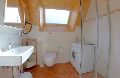 The kitchen is equipped with an oven, a refrigerator, and a dishwasher, as well as a microwave and a toaster. And you can even travel light because you'll have a washing machine. Other amenities include a fireplace and heating.