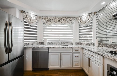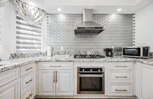 Welcome to your next vacation home! This beautifully remodeled 4-bedroom, 3-bathroom house offers all the amenities you need for a perfect Las Vegas stay. The home's spacious layout is perfect for families or groups, with plenty of room to relax and unwind. The gourmet kitchen is fully equipped with stainless steel appliances and everything you need to prepare meals. The living room is ideal for entertaining, featuring a large TV and ample seating.