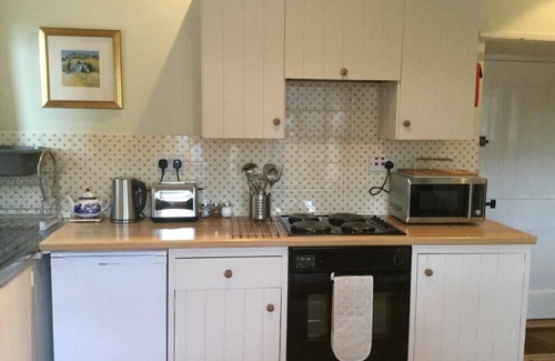 Amenities: Oil central heating with woodburning stove. Electric oven, grill and hob, microwave, fridge. TV/DVD player, CD player, WiFi. Fuel and power inc. in rent. Bed linen and towels inc. in rent. Off-road parking for 1 car. Communal courtyard and gardens, picnic bench, barbecue. Sorry, no pets and no smoking. Shop 1.2 miles, pub 2.5 miles, beach 16.4 miles. Note: Starter pack of logs for woodburning stove is provided. Note: The property is not suitable for children under the age of 2
