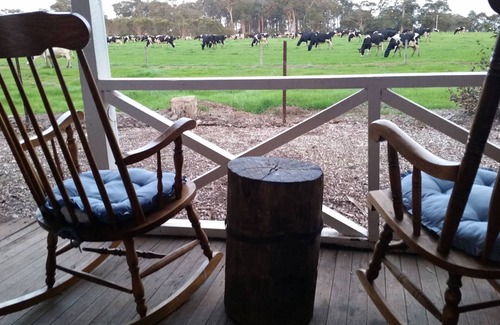 A lovely front verandah with four rocking chairs and an outdoor setting overlooking a native garden and paddocks with cattle, sheep and occasionally flocks of wild emus. There is fantastic bird watching, over 45 species of birds have been identified including blue wrens, golden whistlers and robins.