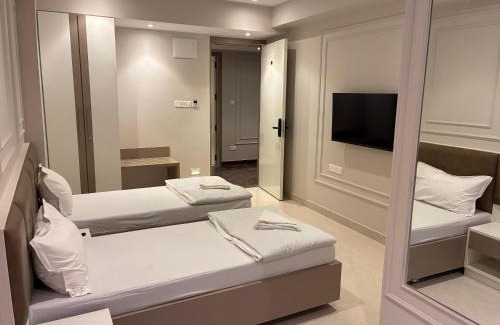 Food & DrinkBottle of water, Tea/Coffee makerBathroomBathtub or shower, Body soap, Shampoo, Free toiletries, Private bathroom, Toilet paper, Toilet, Shower, TowelsMedia & TechnologyTV, Flat-screen TV, Streaming service (like Netflix)GeneralHeating, Iron, Trash cans, Fire extinguisher, Key access, Key card access, Air conditioning, Tile/Marble floor, Ironing facilities, Smoke Alarm, FanLiving AreaDesk, Dining area, SofaServicesWake-up serviceKitchenOven, Electric kettleBedroomChildrens' cribs, Wardrobe or closet, LinensViewCity viewAccessibilityAccessible by elevator, Entire unit wheelchair accessibleRoom AmenitiesNon-feather pillow, Sofa bed, Socket near the bed, Hypoallergenic pillow, Clothes rack, Fold-up bedPhysical distancingSingle-room AC for guest accommodationCleanliness & disinfectionHand sanitizer |