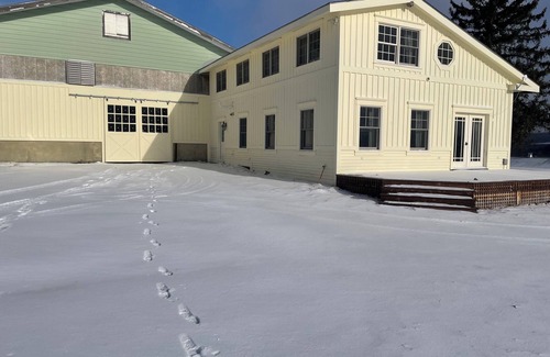 No pets allowed. Nestled on our horse farm in Hillsdale, this delightful farm-stay has 2 cozy queen bedrooms and 2 full bathrooms with showers. Guests will enjoy amenities like WiFi and AC, plus a washer/dryer in the mud room/side entrance. The living room (with its comfortable pullout couch) and the dining room, look out over the fields, with horses in every direction! The wrap around deck offers the best alfresco dining in summer! Being central to the farm, this apartment is attached to our hay barn, and you may hear us in the barn every morning as we head out to feed and care for the horses between 7 and 8. You are more than welcome to join us for the experience, just give us a heads up!:)