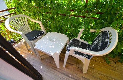 Room amenities: free wi – fi, heating, air conditioning, LCD TV, comfortable beds with anatomic mattresses and pillows, vault, wardrobe closets, a rack for luggage, a work desk with chair, a refrigerator with a freezer, toaster, electric kettle, coffee maker, dryer, hair dryer, iron, children's feeding chair, cot, bed linen, towels, kitchen cloths, equipment for barbecue, wood and coal barbeque, deck chairs on the terrace.