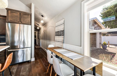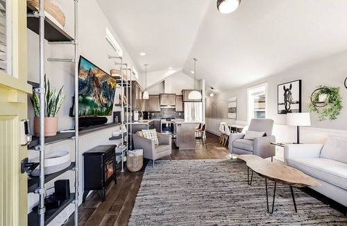 OUTDOOR LIVING: Furnished deck, gas grill, covered front porch, front yardINDOOR LIVING: Smart TVs, dining table, 820 sq ftKITCHEN: Dishwasher, fridge, oven, 4-burner stovetop, microwave, island, breakfast bar w/ seating, drip coffee maker, cooking basics, dishware & flatwareGENERAL: Free WiFi, keyless entry, central heating, ceiling fans, linens/towels, complimentary toiletries, laundry detergent, trash bags/paper towelsFAQ: 4 exterior security cameras (facing out), no A/CACCESSIBILITY: Single-story house, 2 steps to enterPARKING: Driveway (2 vehicles)