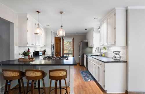- Well-Equipped Kitchen: The kitchen has everything you need for preparing meals, including pots and pans, cups, plates, bowls, a blender, colanders, measuring cups, mixing bowls, a toaster, and more. We also provide a starter pack of dish cloths, dish soap, dishwasher detergent, salt, and pepper.