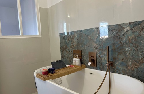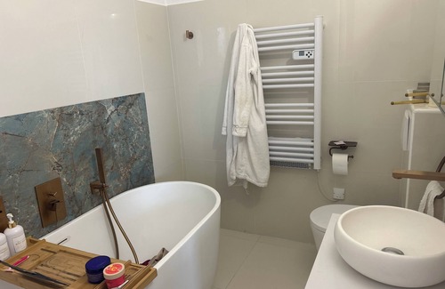 The kitchen is equipped with an oven, a stovetop, and a refrigerator, as well as an electric kettle, cookware, and a toaster. And because there's access to laundry facilities, you can go a bit lighter on your packing. Other amenities at this 1-bedroom, 1-bathroom rental include an ironing board, air conditioning, and heating.