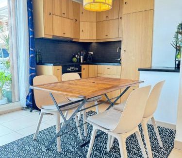 T3 avec vue mer dans residence de standing offers accommodations in Sète, a 14-minute walk from Corniche Beach and 21 miles from GGL Stadium. This beachfront property offers access to a terrace, free private parking, and free Wifi. La Mosson Stadium is 24 miles away and Montpellier National Opera is 24 miles from the apartment. The apartment is composed of 1 bedroom, a fully equipped kitchen, and 1 bathroom. A flat-screen TV is available. The accommodation is non-smoking. Montpellier Town Hall is 23 miles from the apartment, while Montpellier Cathedral of Saint Peter is 23 miles from the property. Beziers Cap d'Agde Airport is 19 miles away.