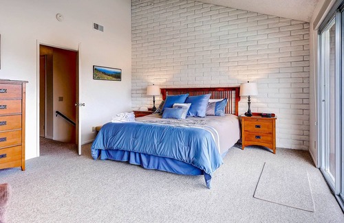 Upstairs are 3 bedrooms and 2 full baths. Open the curtains to over 15' of windows and a private deck. The 2nd bedroom has a queen bed and the 3rd has 2 twins. There is extra sleeping space on the queen-sized sofa bed downstairs.