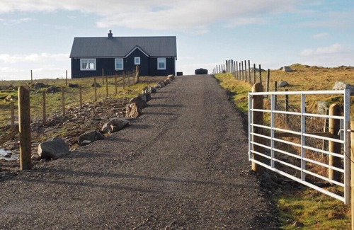 Taigh Gorm is a new-build cabin resting in Baleshare on the Isle of North Uist near Balivanich in the Outer Hebrides, Scotland, and can sleep four guests in two bedrooms.