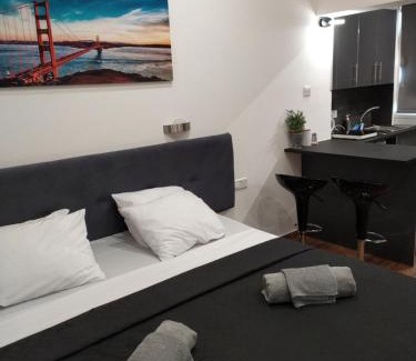 Food & DrinkTea/Coffee maker, Bottle of waterBathroomFree toiletries, Private bathroom, Bathtub or shower, Toilet paper, Toilet, Shampoo, Towels, Shower, Hairdryer, Walk-in shower, Body soapMedia & TechnologyTV, Flat-screen TVGeneralIron, Heating, Key access, Air conditioning, Fire extinguisher, Private entrance, Trash cans, Tile/Marble floorKitchenKitchenette, Kitchen, Electric kettle, Cleaning products, Refrigerator, Wine glasses, Dining table, Toaster, Kitchenware, StovetopLiving AreaDesk, Sitting areaBedroomWardrobe or closet, Linens, Extra long beds (> 6.5 ft)OutdoorsOutdoor furnitureBuilding CharacteristicsDetached, Private apartment in buildingRoom AmenitiesSocket near the bed, Adapter, Hypoallergenic pillow, Clothes rack, Non-feather pillowViewQuiet street viewCleanliness & disinfectionHand sanitizer |
