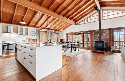 Featuring cathedral ceilings, two cosy fire places, two lounge areas, a Chef's kitchen, ten seater dining table, a sunroom, kids play equipment, an outdoor fire pit, plus so much more that will make every stay truly unforgettable.