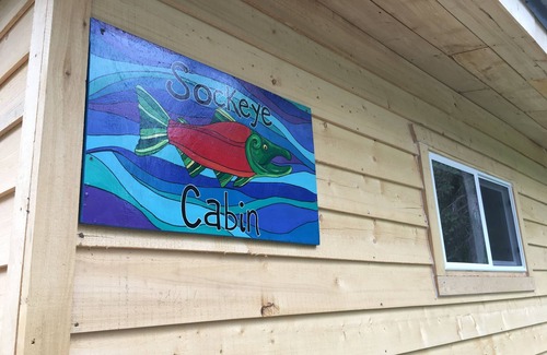 Our cabin is in a private wilderness setting on a beautiful stream. There is a wood-fired sauna for your year round use. In mid-July through mid-September salmon often swim by your deck.
