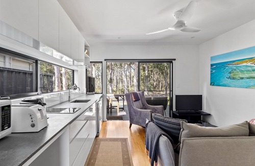The unit is on ground level with a car parking bay right out the front door. The unit features one bedroom with queen size bed and forest views. The modern galley style kitchen has a cooktop, dishwasher and bar fridge (no oven or freezer) and opens out onto the back deck complete with electric BBQ and amazing uninterrupted forest views. The living room has reverse cycle air-conditioning, smart TV and Wifi access. The large modern bathroom features a free standing bath tub and open shower. You'll have your own private access and will not be disturbed during your stay. The upper level may be occupied during your stay, however this is completely separate and the tenant will not have access to the guest accommodation. Within walking distance to the local bakery and cafe strip, Indulge yourself at gourmet restaurants and everything that Margaret River has to offer. Relax and unwind with nature at your door step, with access to walking trails just minutes away and close to mountain bike tracks. Walk to the famous Margaret River bakery for a coffee and almond croissant in the morning, a cocktail or local beer on the balcony at Swings Taphouse or a delicious traditional Italian woodfired pizza from Pizzica!