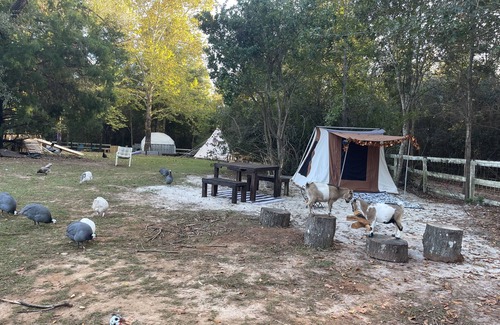 ****We’re a FARMHER owned micro-farm in Northeastern Tallahassee within a few miles from I-10. The farm is a back-to-nature wellness glamping facility, in the city. We believe in enjoying the abundance of nature, with a few creature comforts.THE FARM- The farm started in the late 1800’s and has remained untouched since 2012, when the family farmhouse burnt. The farm's infrastructure is still present today, and we’ve started to uncover it after 20+ years. Purchased in 2023, Our new farm will provide a place to learn about sustainability as we practice being a good steward of the land. The backbone of the farm. We aim to serve the growing interest in ECOtourism & AGRItourism, by educating the public with farm tours.We will practice *Permaculture * Food forest *Low carbon footprint *Regenerative Farming & Rotational Grazing with *HERITAGE animals.Most of our heritage animals are “MINI” and part of our traveling therapy program (zoo). The farm animals aid in the conservation efforts and create awareness of historic farm animals going EXTINCT, due to industry practices. (livestockconservancy.com)Every acre of the farm is a unique experience and our “special places” create lasting memories. Our favorite is “The Manger”. We plan to restore the old cattle shoot, holding pens and “manger” structure. In the future it will be a historical therapy petting zoo. We love our animals and they all serve multiple purposes on the farm.The farm’s one of the last larger parcels, undeveloped, in the area. Two miles from I-10 interchange, NEW Tractor Supply, Wendys, Amazon, and a new Gas station. Founded on the love of animals and a passion for sustainability, we remain committed to compassionate practices and the most natural care of our land and animals as possible. As stewards of the land and herd, we believe we have a responsibility to share nature's blessings. We offer several agritourism opportunities on the farm, from farm stays to day visits. It is our goal to create a space where our visitors can have fun and learn about the animals who share that space. We also strive to serve as a valuable resource for first time goat owners. To support that endeavor, we sell chicken eggs, specialty cottage goods, Our goal is to provide a perfect balance of peaceful connection with self and nature coupled with a connection to community.