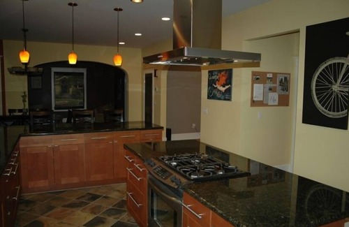• Modern kitchen complete with granite countertops and top of the line appliances, perfect for group prep and dining