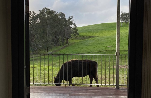 The Blackwood River is right at your door step with plenty of walk trails and bike tracks to discover. Town centre is within strolling distance but the chalet is located on the edge of a 130acre paddock. There is an adjoining second chalet connected by a locked decking door. Plenty of room with everything you need for that special time away. Larry the sheep, Lady, Clementine and Flossy our pet cows will be happy to meet you on arrival. NO pets