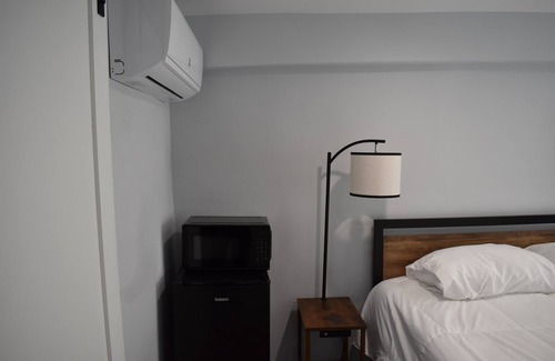 One Queens Bed in Newly renovated room (2024) New Bedding, Shower, Floor, Tile, Fixtures. heating and air conditioning.