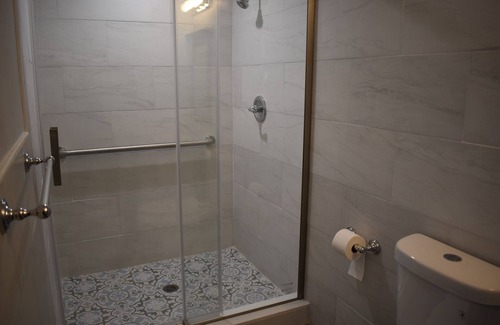 One Queens Bed in Newly renovated room (2024) New Bedding, Shower, Floor, Tile, Fixtures. heating and air conditioning.