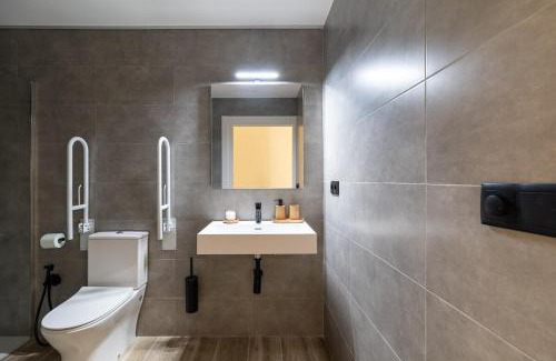 BathroomTowels, Shower, Toilet paper, Bathtub or shower, Conditioner, Shampoo, Toilet, Free toiletries, Hairdryer, Private bathroom, Walk-in shower, Body soapMedia & TechnologyFlat-screen TV, TV, Satellite channelsGeneralAir conditioning, Key access, Trash cans, Tile/Marble floor, Ironing facilities, Smoke Alarm, Fire extinguisher, Heating, Interconnecting room(s) available, Private entrance, IronKitchenRefrigerator, Dining table, Dryer, Cleaning products, Stovetop, Wine glasses, Microwave, Washing machine, Kitchen, Oven, Toaster, Kitchenware, Coffee machine, DishwasherLiving AreaSitting area, Sofa, Desk, Dining areaBedroomWardrobe or closet, LinensAccessibilityToilet with grab rails, Hearing accessible, Entire unit located on ground floor, Entire unit wheelchair accessibleBuilding CharacteristicsPrivate apartment in buildingRoom AmenitiesSocket near the bed, Sofa bed, Non-feather pillow |