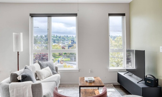 This furnished home is situated in Ballard, a hip waterfront neighborhood offering trendy restaurants, shops, breweries, and bars. Ships pass through the Locks, which have become a popular picnic spot. The beach at Golden Gardens Park offers mountain views and cater to sunbathers and volleyball players. There’s also a Nordic Heritage Museum here that displays the area’s Scandinavian roots. There are tons of ways to access the rest of the city from here, for instance, by monorail, streetcar, and bus.