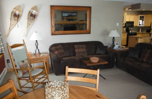 Located on the ground floor, our condo is easily accessible, just steps from the hot tub, and has a clear panoramic view of the mountains.