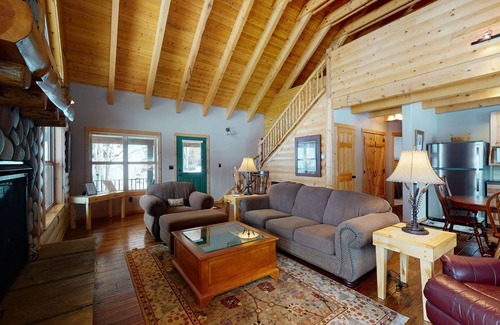Do not be deceived, this is not a rustic cabin, but a cabin with luxury in its name. When you come in, kick off your shoes and warm your feet. The great room is joined by the open kitchen. Down the hall is the master bedroom/bathroom. Across the hall from the bedroom is the other full bath that serves the rest of the house. Upstairs is a loft with two queen beds and a queen sleeper sofa. You'll love the log cabin look and feel of this space that backs up to 7 acres of mountainside adventure and fun. Across the street, (down to left about 800 yards;) you can fish your way to lunch in Almont, then fish your way back home. Don't miss out on this grand new adventure into the mountains!