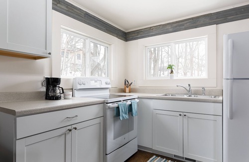 This tiny, cozy, 600SF home on lg, partially wooded lot has everything you need to be comfortable. Great, mixed-use location:1 block to Boardman Lake Trail (access at Center St), 1 mile to the Bay & downtown. < 1 mile to Brick Wheels bike & X-country ski rental. We like being able to walk or bike into town on the non-motorized pathway along Boardman River. As of June, 2025, a second home has been constructed at back of property, ~40 feet behind Tiny House. It is not yet occupied.