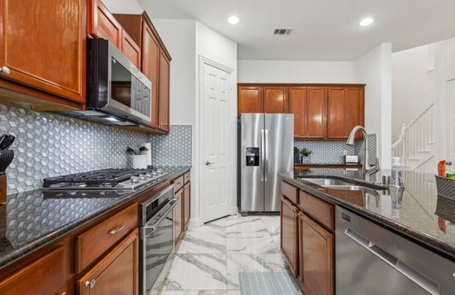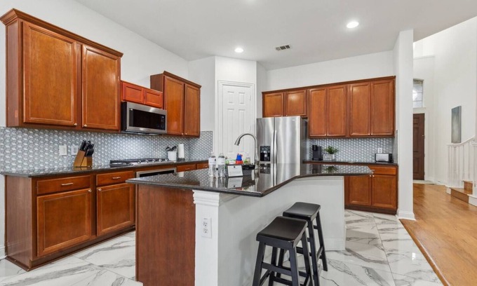 Professionally managed 24/7 by Texas Corporate Homes who specializes in insurance temporary housing. Discover homey comfort in this 4BR house nestled in Richardson. Features a king-size bed in the primary bedroom on the 1st floor and 3 secondary bedrooms with 2 queens and 2 twins on the 2nd floor. Enjoy a dedicated office area for your work-from-home needs, a pet-friendly fenced area, and a 2-car garage. Note: No pool available.