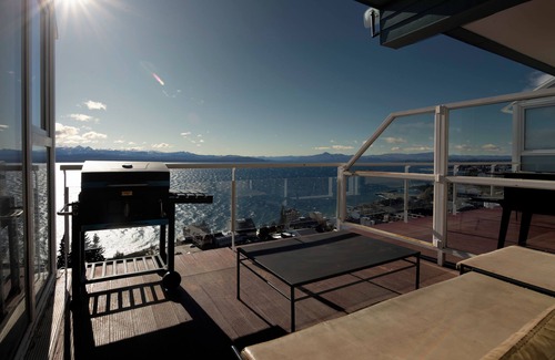 This sub-penthouse apartment is truly exceptional. Perched high above Bariloche, it features 3 bedrooms and 3.5 bathrooms, as well as unbeatable views through floor-to-ceiling glass windows throughout the property. This magnificent rental apartment features a bright spacious layout with a luxurious living area, dining area, kitchen and a spectacular balcony to enjoy. Comfortably catering for 6-8 guests and with 150 sq. meters of space, this is the ideal place to come for an extra-special trip with a group of friends or family. Modern and stylishly designed with panoramic views from almost every room, staying in this residence is quite literally living the high-life. Whilst looking over the whole of Bariloche, the apartment remains only a 5 minute walk from downtown, so you wont have to go far to join the action. There are 3 gorgeous bedrooms and 2 en-suite bathrooms; 2 of the rooms are king-size with additional pull-out beds and the third has another pull-out bed for 2 extra guests. The kitchen is fully-equipped for home cooking, and you can choose between the inside dining area or eating out on the spacious balcony. Central heating and high-speed Wi-Fi is available throughout the apartment as well as 2 plasma-screen TVs with extensive satellite channels, making this the perfect place to unwind and relax after a days exploring. Sink into the comfortable sofa and watch a DVD, enjoy a traditional Argentine barbeque on the balcony, or just take in the view over a glass of wine- you wont regret turning down that stuffy hotel room. Designed with all the comforts of a proper residence, this is a true home-away-from home. For a unique and exclusive place to enjoy the delights of Bariloche, this apartment will exceed all your expectations.