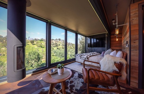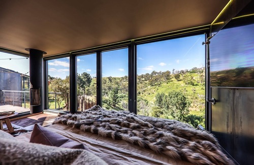 Welcome to luxury, to wellbeing, to exclusivity. Welcome to Clifftop at Hepburn. From the moment you step into Clifftop at Hepburn, you're in another world. A world where flickering flames and floor-to-ceiling windows frame breathtaking panoramic views that plunge from the site of an old pine forest down a sheer cliff face, unrolling onto native bushland below.