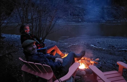 Riverfront property | Fishing access | Kayak put in | Walking & biking trails | Fire pits | Wildlife | Covered decks | Queen beds | Satellite internet | Board games