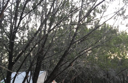 Our beautiful campsite is located 10 miles West of Lampasas. This site is uniquely located in the high country of the Colorado river drainage. Nearby are Stoneledge and Fiesta wineries also close is Bend State Park a great place for Biking, Hiking, Swimming in the Blue Hole and Fishing in the river! Your campsite is located in a trimmed Cedar Glen with privacy and abundant wildlife viewing opportunities. There is a water misting area for a cool down spot near the tent. The night sky is incredibly dark and the stars are so bright that the Milky Way looks like a filmy cloud that stretches from one horizon to the other!