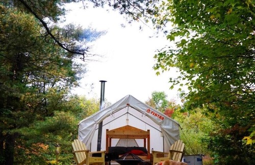 Firewood is there! For sanitation for you, please bring your bedding, cooking gear, and remove your trash, from due to Covid. A gas grill with gas, is provided with a side burner for your convenience. A twin extra mattress is under the queen bunkbed. Tentrr allows pets. If you bring them please know who your available local Vet may be. Poochie likes to run and nose around, is your gamble in the wilderness. Possible Porker quills in your dog's nose quickly changes the peaceful scene. Exotic pets NO! No constant barking dogs tied and left alone at the campsite. Leash is a good idea too! Everyone wants to enjoy the peace of camping. Can do! OK?